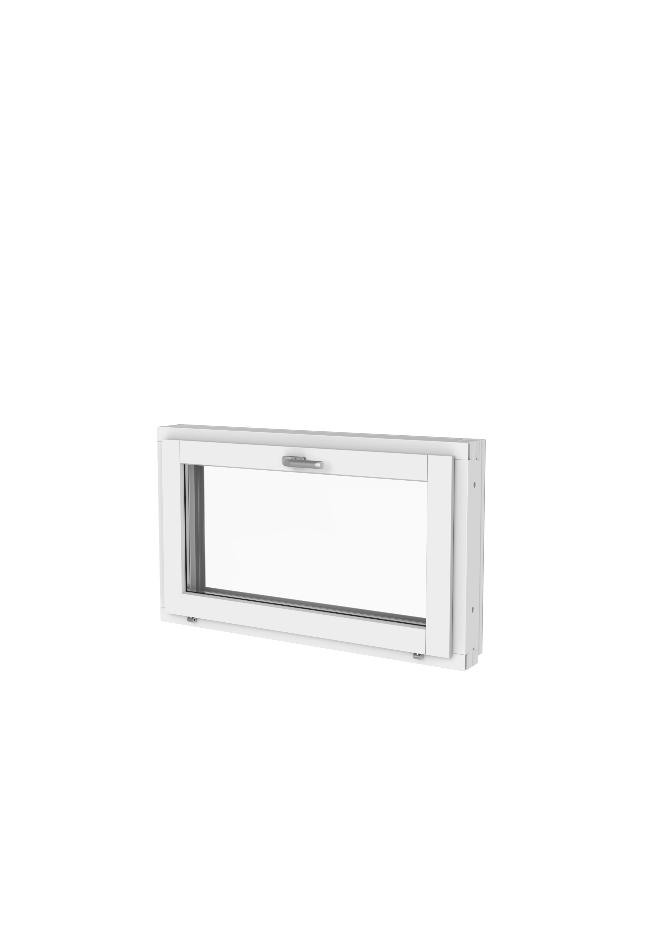 SSC Etri Fönster 2+1 Bottom hung window is a window that opens inwards. The casement consists of two connected sashes. The inner casement consists of wood with a mounted insulating glass with two glasses. The outer casement is made of aluminum with a simple float glass. The casement is attached to the frame via bolt hinges on the bottom piece, which means that when opened, the casement swings inwards in a vertical position.