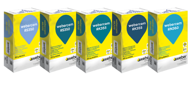 Cementitious finishing render webercem RS350 webercem RK355 webercem RN360