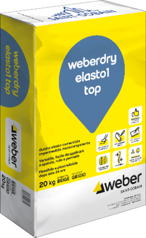The product observed within the scope of this study is the weberdry elasto1 top. This is a single-component waterproofing product cement-based. It is used for waterproofing balconies, terraces, shower stalls, swimming pools, before laying ceramic coverings. is a flexible coating used as a protective layer for screeds, plasters and concrete.