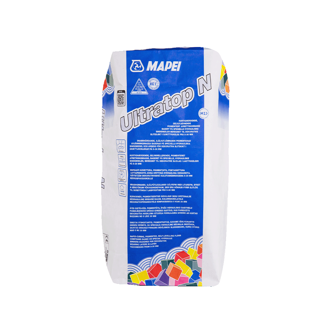 Ultratop N is a pigmented, cementitious, pumpable, fast-curing, self-levelling product for decorative floors. The product is available in four different colours: white, light grey, Nordic grey and anthracite. Ultratop N is ready to use, has high mechanical strength and resistance to abrasion.