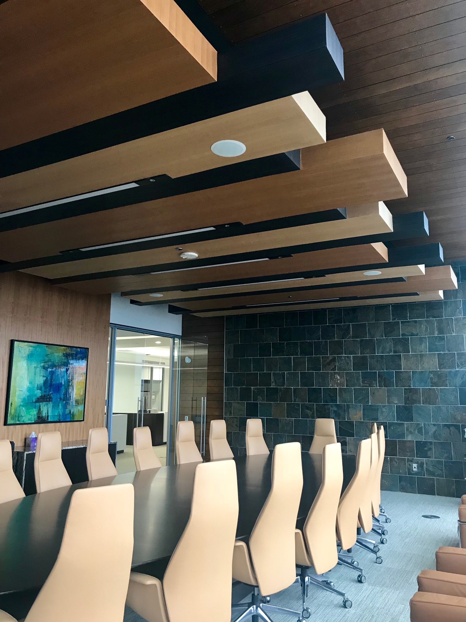 SanFoot™ is a prefinished real wood veneer wallcovering 0.3 mm thick. The standard sheet sizes are 3x9 ft and 3x10 ft. Wood from the White oak and Walnut species are used to manufacture the product. The product is made of three main layers: wood veneer, paper, and aluminium foil. Adhesive is also used to stick the layers together, in addition to the hot press that occurs in the manufacturing stage. The veneer has multiple applications for indoor finishes, being flexible for projects with large wall and ceiling areas. It is broadly used both in residential and commercial contexts, including hospitality, retail, health care, corporate and transportation interiors.