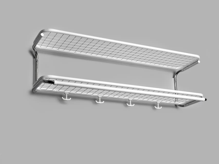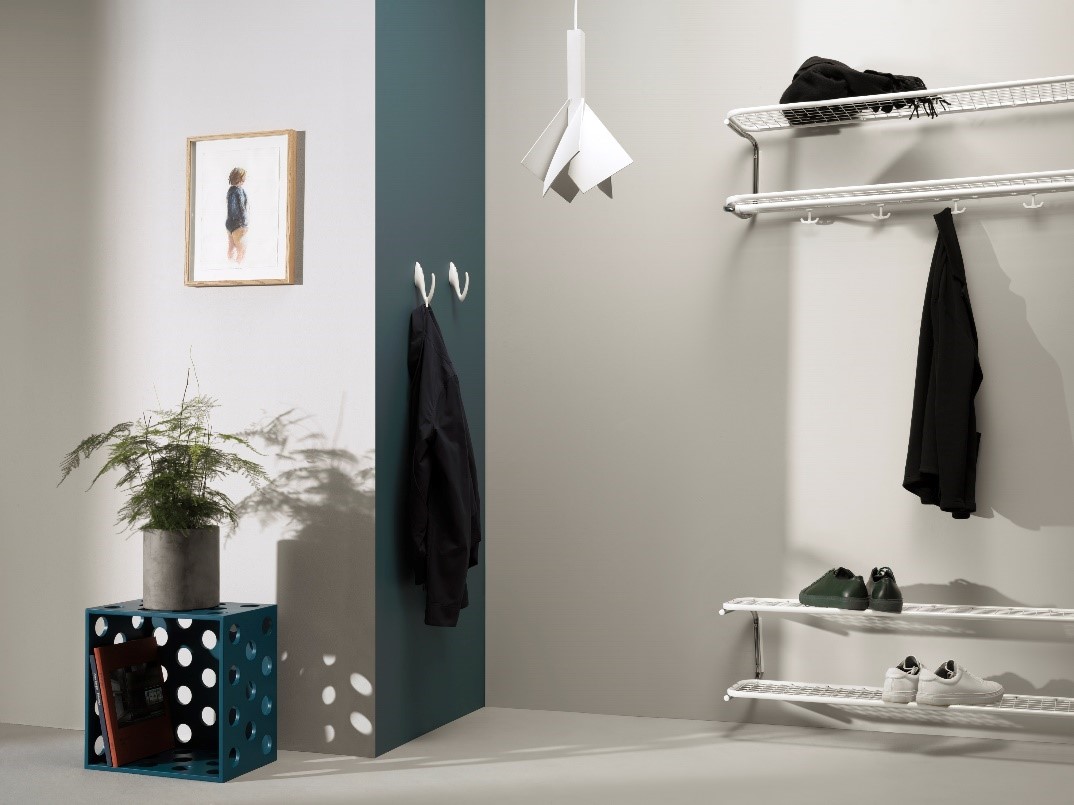 Gunnar Bolin designed the Classic hat rack in the late 1950s. Its rounded form broke new ground and saved a lot of heads from sharp edges. A very functional and durable hat rack which is very flexible with different widths to fit your hallway. Shelf and brackets are made of steel with hooks, wall-pieces, end plugs and tube sleeves in plastic. Hanging rail in plastic-covered steel tube. Powder coated shelves and brackets in chrome or powder coated.