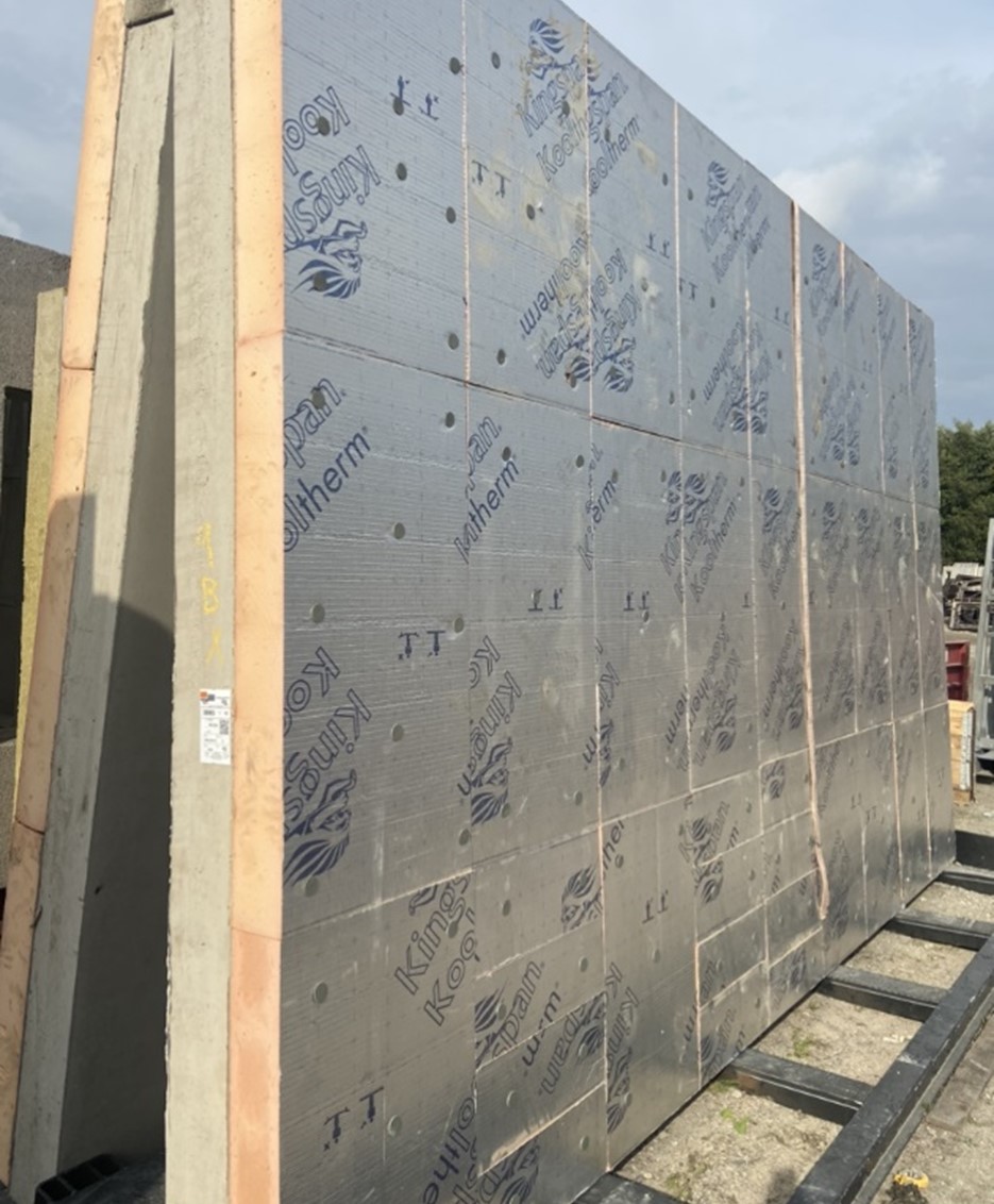 Sandwichvägg används främst som yttervägg och består av en bärande innerskiva samt isolering . Innerskivan är gjuten vilket ger en slät yta, redo att beläggas med gips och med låga krav på efterarbete. Den yttre Isoleringen kan varieras i olika tjocklekar beroende på önskad värmeisolering, men för denna LCA definieras den som en tjocklek. Sandwichväggen är förberedd med hål och genomföringar för ventilationskanaler och el. Transporten till byggplatsen sker till största delen med lastbil eller tåg från tillverkningsanläggningen i Ucklum.
