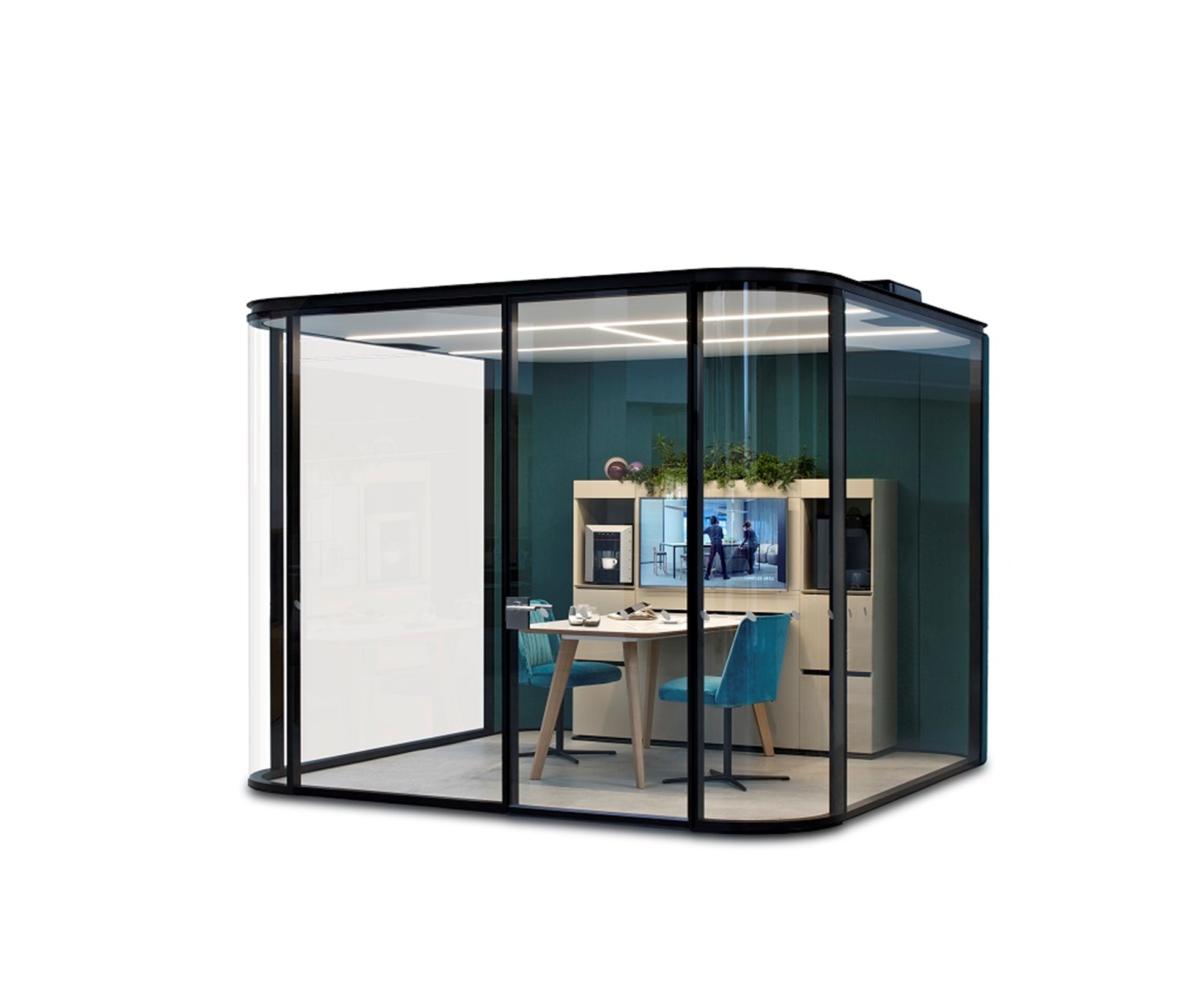Collaborative room is sold in a range of different dimensions and finishes. The function of the product is to create a close and soundproof space for job meetings. In this study a “standard” collaborative room is presented.