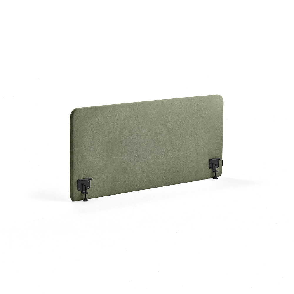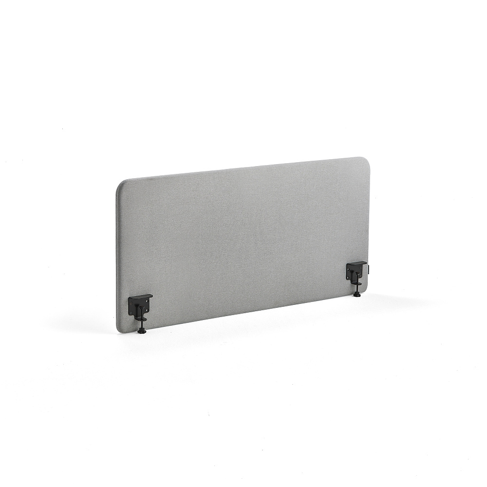 AJ Produkter's sound-absorbent desk screen, designed in-house to enhance sound environments and offer privacy in office settings. They come complete with fittings for easy desk mounting.