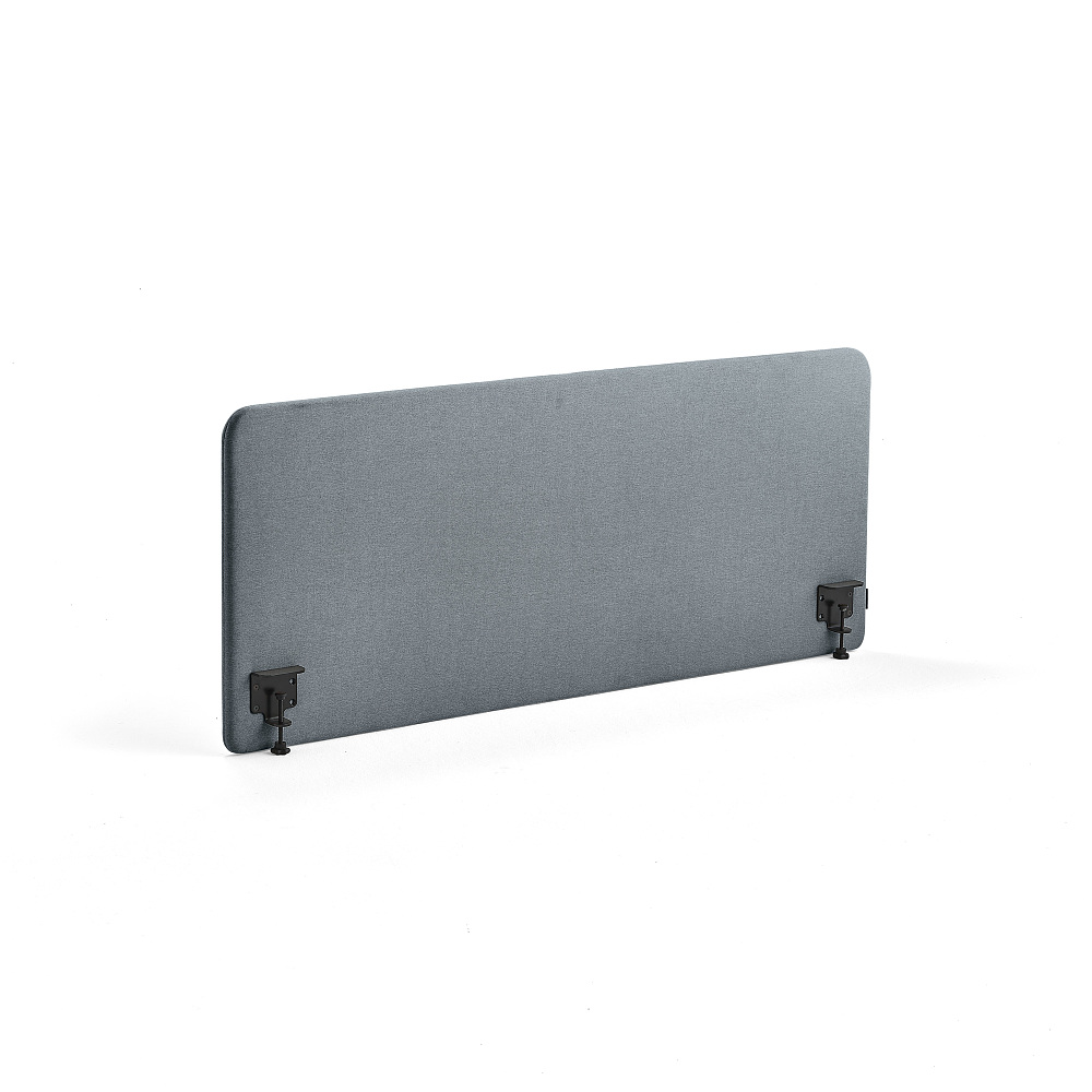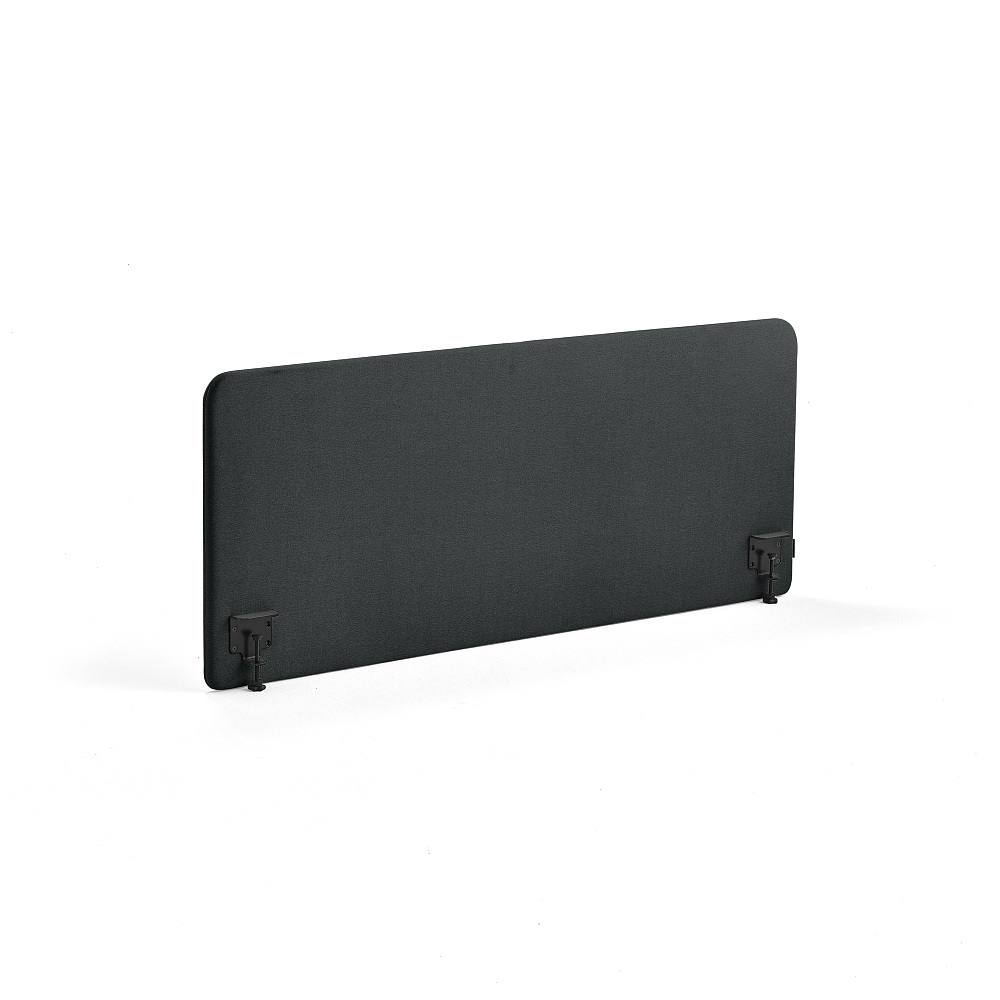 AJ Produkter's sound-absorbent desk screen, designed in-house to enhance sound environments and offer privacy in office settings. They come complete with fittings for easy desk mounting.