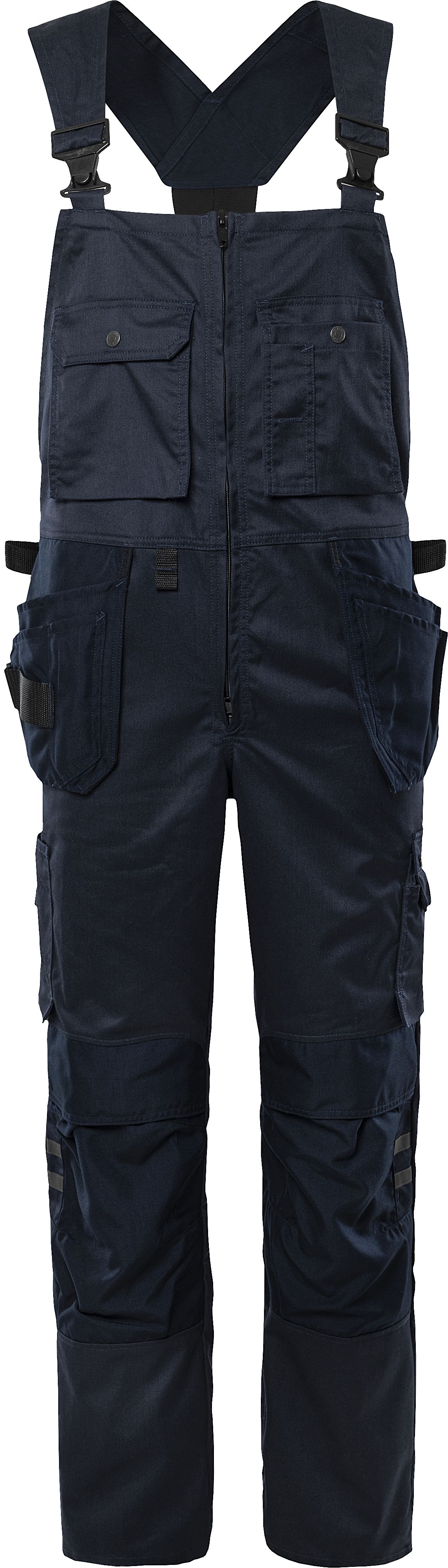 Fully equipped craftsman bib'n'brace made of recycled polyester and cotton. The durable material in combination with mechanical stretch gives a comfortable freedom of movement.