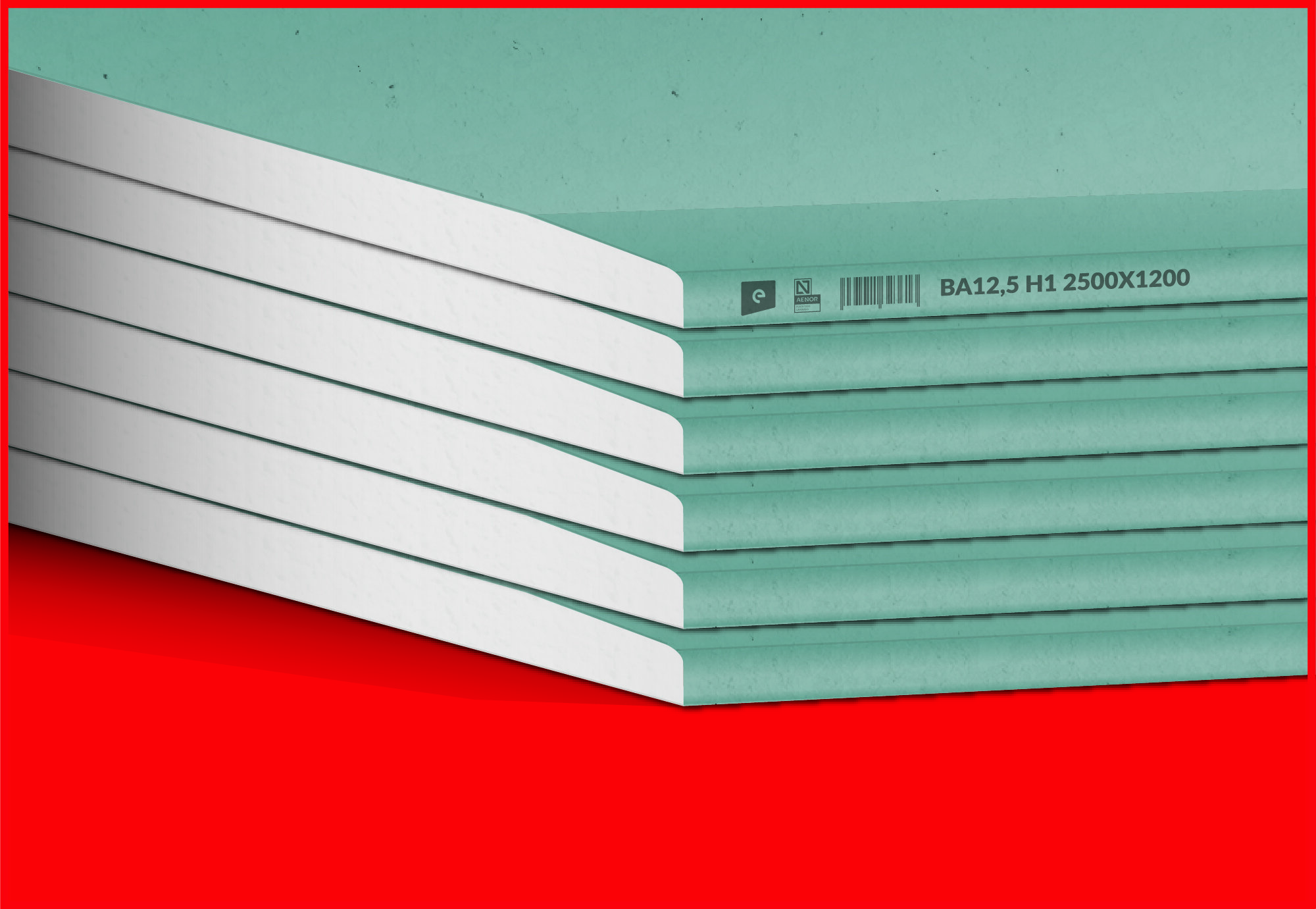 PLACA DE YESO LAMINADO HUMEDAD H1 12,5 mm; MOISTURE RESISTANT GYPSUM PLASTERBOARD H1 12,5 mm
