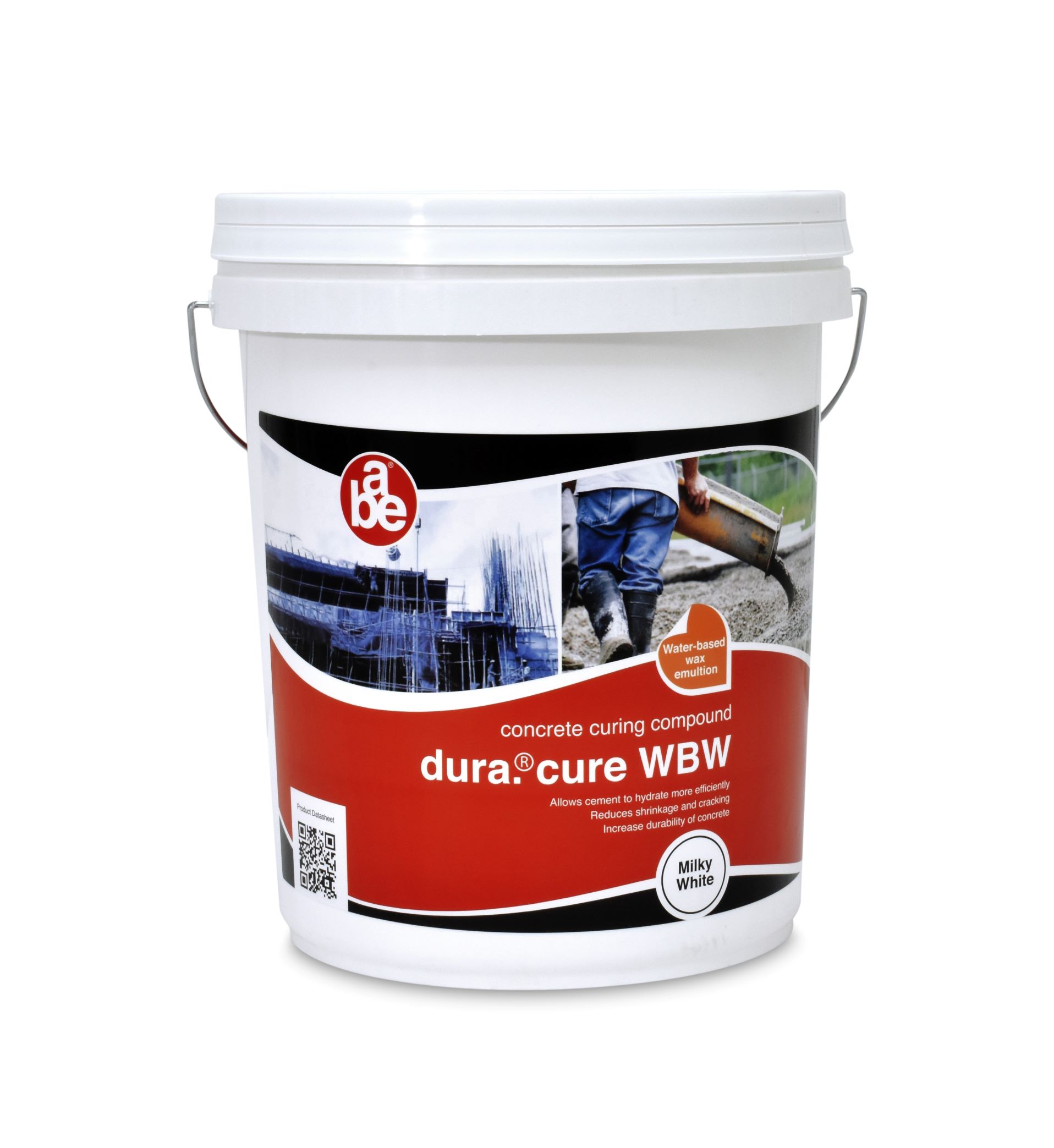 DURACURE WBW is a concrete curing compound used to create a non-penetrating continuous film immediately upon contact with a cementious surface. It is a low viscosity, wax emulsion, water-based concrete-curing compound. It is applied to green concrete or fresh cementitious surfaces as a nonpenetrating film, which appears white after application but then dries to a clear film. It is used for curing of large concrete surface areas, such as airport aprons, concrete roads and bridge structures as well as all general applications. The film prevents excessive water evaporation which permits more efficient cement hydration.