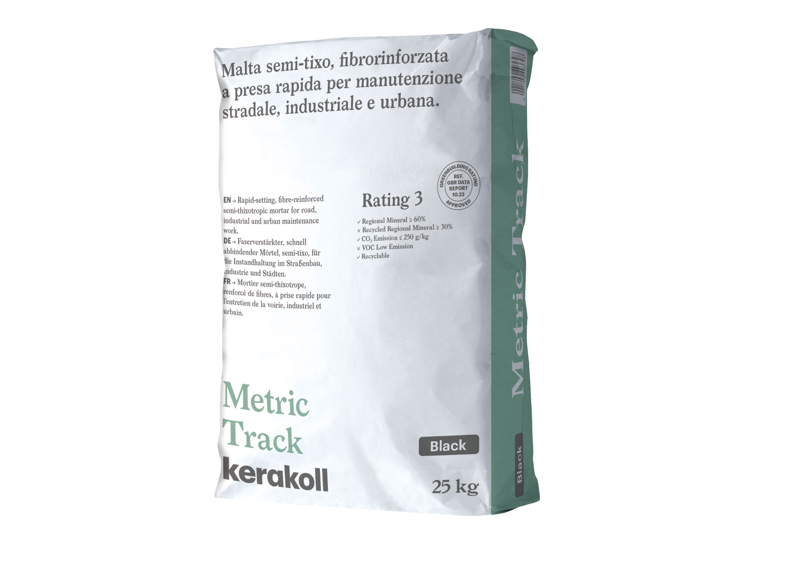Metric Track Black is a class R4 mortar for applications that must be ready for use quickly, such as industrial and airport flooring and pavements and to anchor and fix traps and drains, manholes, fences, sign posts, safety barriers.
