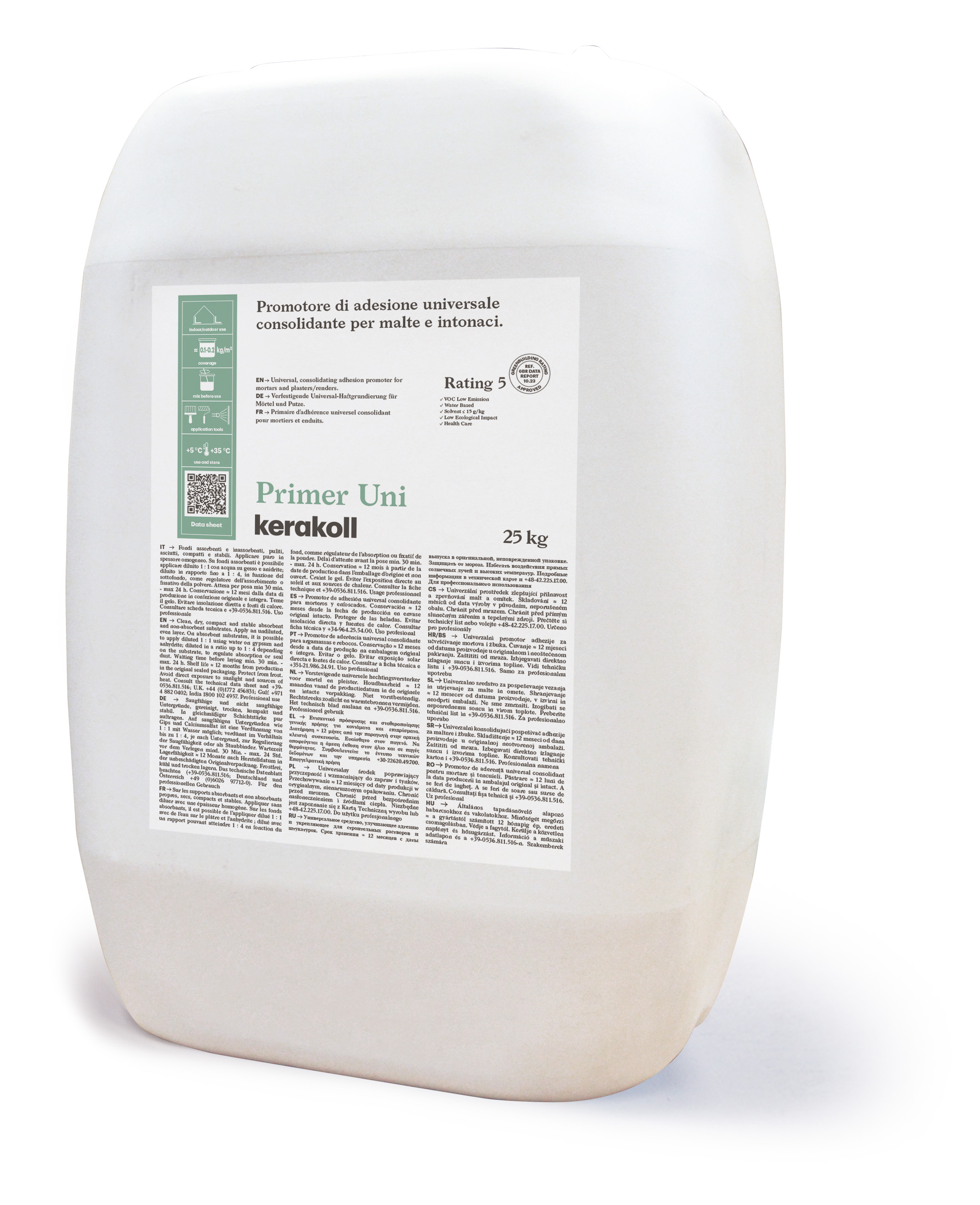 Primer Uni is a universal, consolidating adhesion promoter for mortars and plasters/renders.