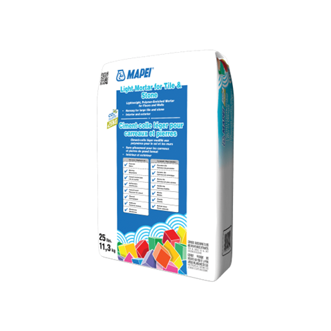 Light Mortar for Tile & Stone is a premium-grade, lightweight, single-component thin-set mortar that can also be used for large-and-heavy-tile and nonsag applications.