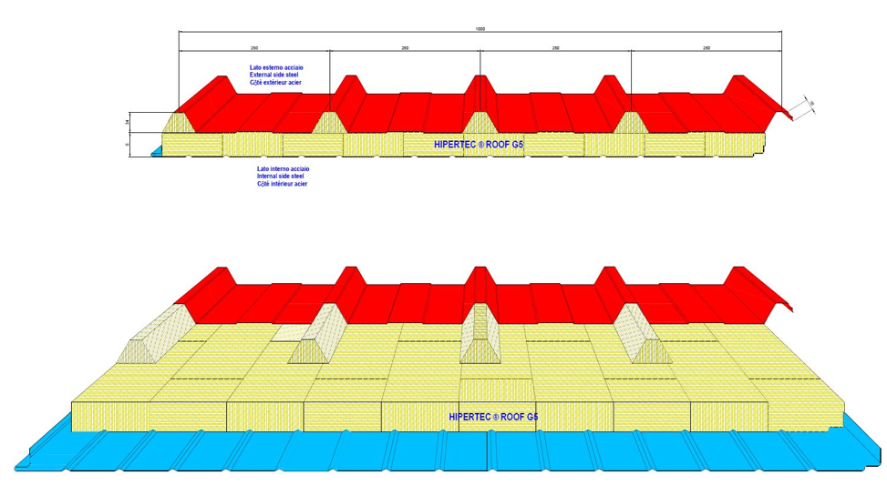 Hipertec® Roof G5 è un pannello metallico autoportante coibentato in lana di roccia destinato alla realizzazione di coperture di fabbricati industriali e civili che richiedono elevate prestazioni di resistenza al fuoco e/o elevate prestazioni fonoisolanti.