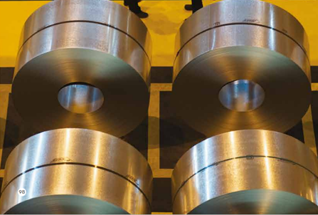 AM/NS India manufactures steel colour coated sheets (PPGI) and Galvanized Iron products in a state-of-the-art 0.4 MTPA facility. It produces high-quality colour coated sheets that add aesthetic beauty to the strength of steel. Galvanizing line producess galvanized Iron products, which undergoes colour coating process to produce pre-painted galvanized iron products in sizes upto 3 mm thickness and 1450 mm width. They are produced in Hazira, Pune, Gandhidham, and Khopoli facilities. Pre-painted galvanized sheets (PPGI) have been extensively used across a wide range of prestigious projects across the world. Galvanized Iron has General structural, CQ -Commercial quality and EDD application grades.