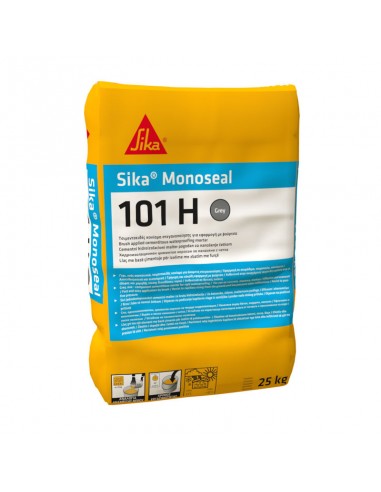 Sika® MonoSeal-101 H is a mixture of special cement and aggregates, containing waterproof admixtures, that is mixed with water to form a brushable paste. It has good adhesion on many substrates, including concrete, cementitious mortars, stone, etc.