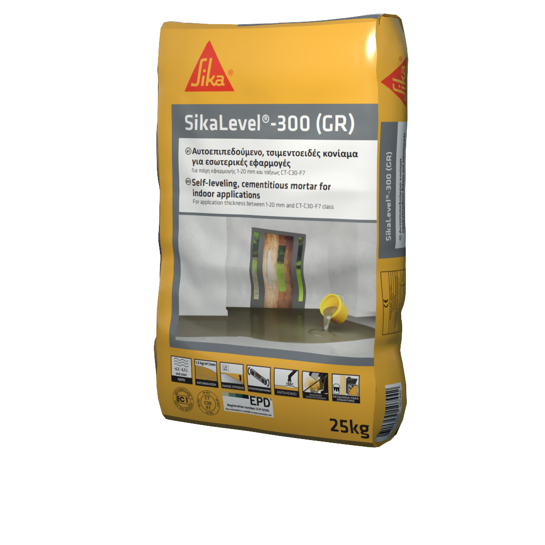 SikaLevel®-300 (GR) is a medium duty, polymer modified, cementitious floor levelling compound. It provides a reduced shrinkage and smooth finish compound on subfloors before the application of floor coverings.