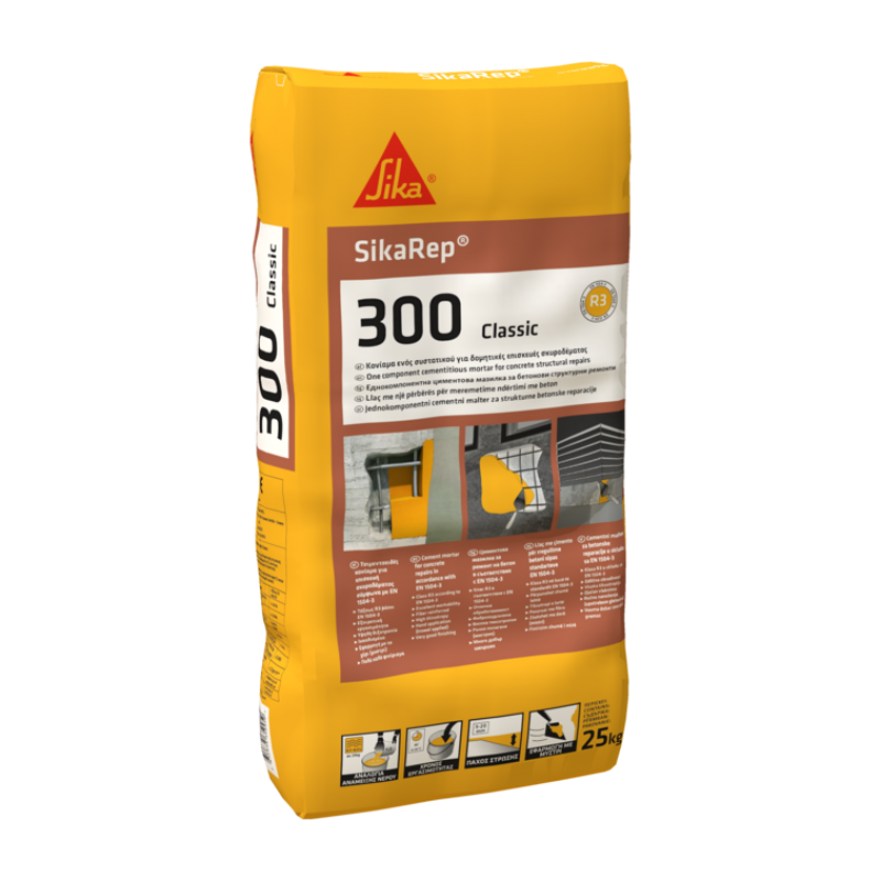 SikaRep®-300 Classic is a ready to use, one component, thixotropic repair mortar, for medium-thickness, regular concrete structural repairs, meeting the requirements of Class R3 of EN 1504-3.