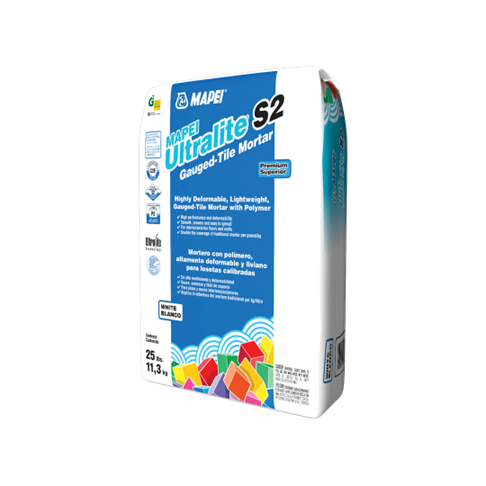 Mapei Ultralite Mortar S2 white is a premium, highly deformable, lightweight, gauged-tile mortar with polymer.