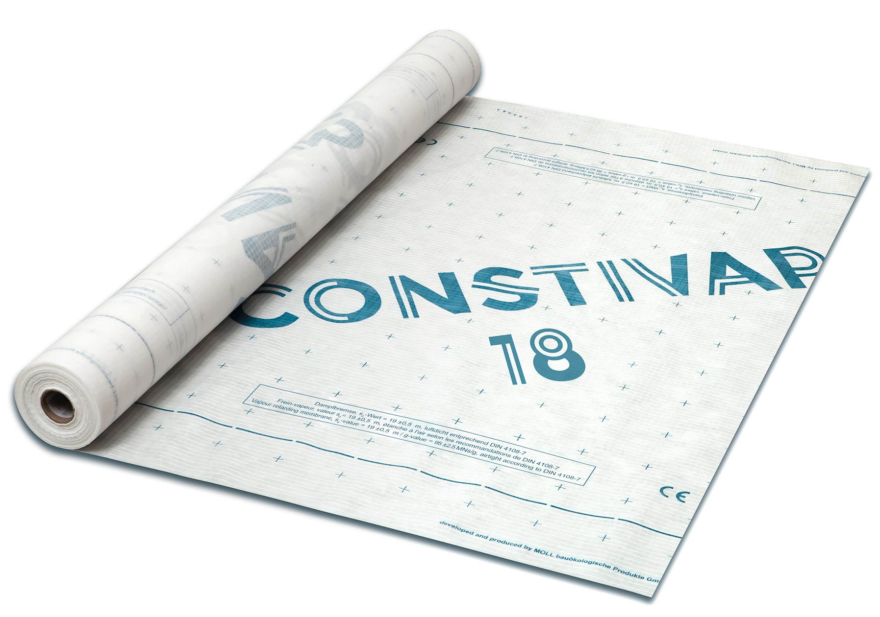 CONSTIVAP airtightness and vapour check membrane consists of a grid-reinforced film and a non-woven polypropylene fabric. With airtight bonding of all membrane overlaps and connections to adjacent building components, it enables a reduction in heat loss from buildings, prevents structural damage and supports a comfortable indoor climate in winter as well as in summer.