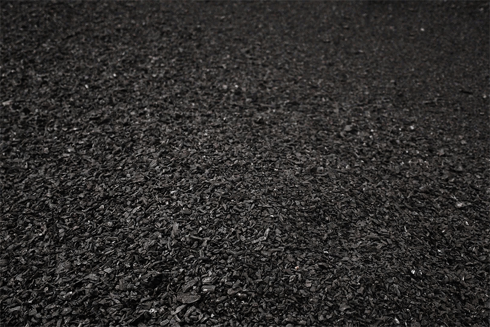Biochar from wood chips, EBC-certified. It has approximately 80-90% carbon content.