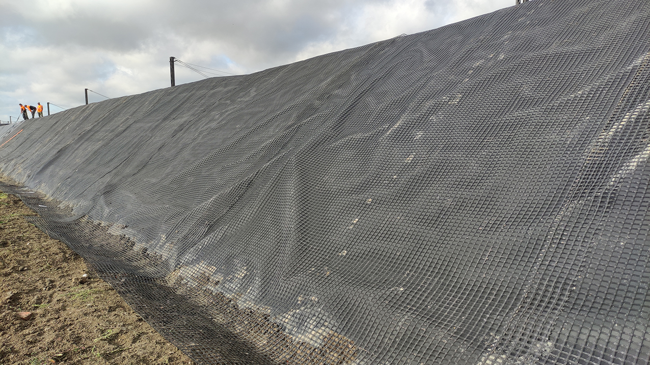 NOTEX® C can also be used to increase the stability of a layer of soil placed on a geomembrane on a slope.