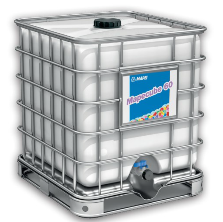 Mapecube 60 is a liquid admixture that, by optimizing the hydration of cement phases, increases the strength of concrete and mortar at all ages. Mapecube 60 is available in totes measuring 275 U.S. gals. (1 041 L).