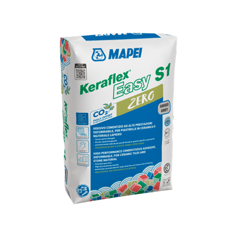 Keraflex Easy S1 Zero grey is a high-performance, easy-to-apply, deformable cementitious adhesive with extended open time, with high wetting capacity, very low emission of volatile organic compounds and offset Greenhouse Gas emissions. It is particularly recommended for bonding large-sized tiles over large areas of flooring.