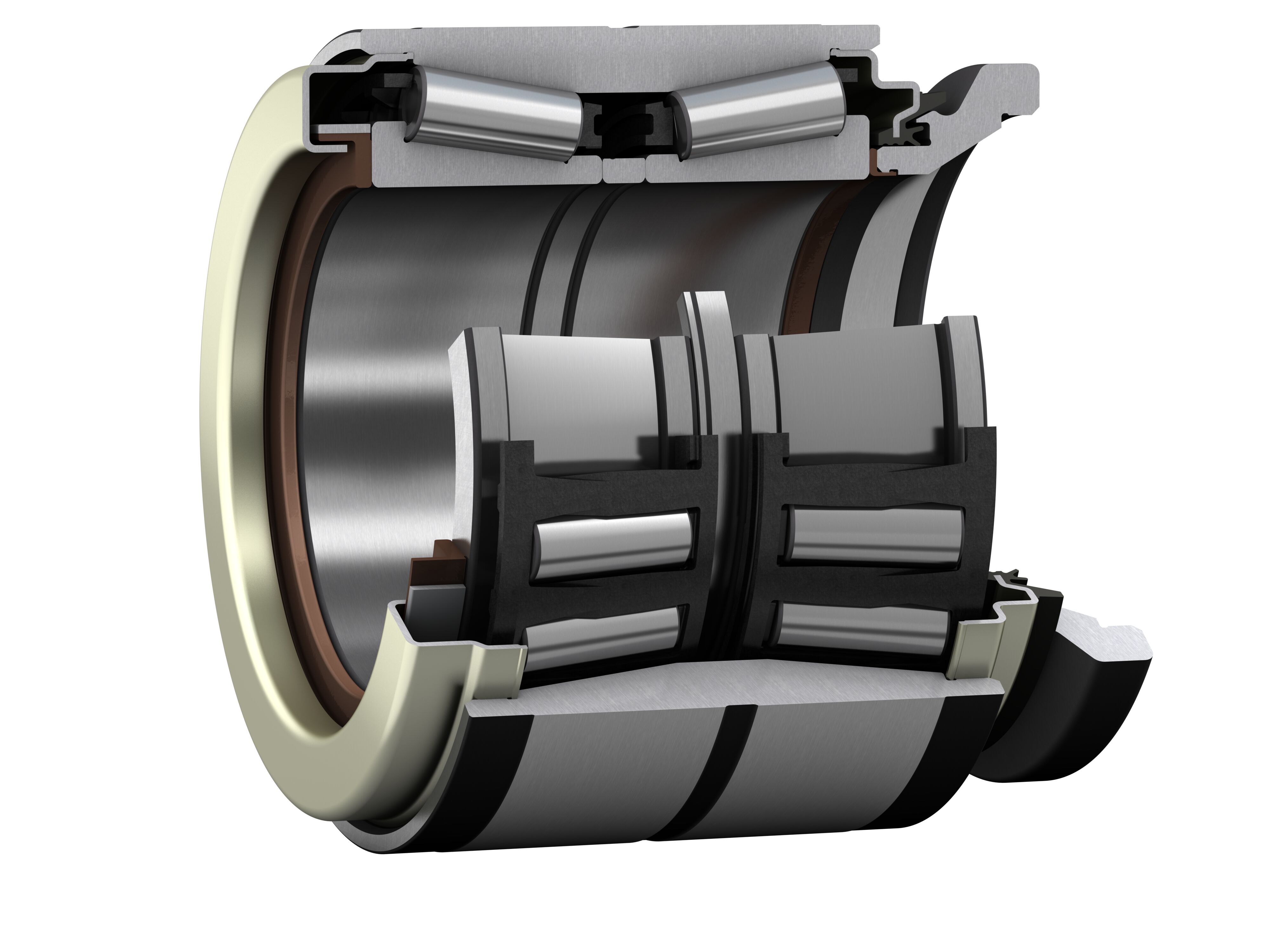 BT2-8559 B is a tapered roller bearings unit, TBU. TBUs are used on wheelset of trains. More particulary, in the axlebox. Axleboxes are one of the most safety-critical sub-systems in railway vehicles. Axlebox bearing units are factory prelubricated and fitted with either contacting or non-contacting high performance seals. TBUs consist of two inner rings, one common outer ring, two tapered roller and polymer cage assemblies, a central spacer, grease fill and two sealing systems. In addition, further components like lateral spacers, backing rings and end caps with their locking device can be added to the assembly, based on customer's request. TBUs are ready-to-mount units with a pre-defined axial clearance. The unit design offers bogie and vehicle suppliers and railway operators the advantage of a sealed and pre-lubricated unit that is easy to mount.