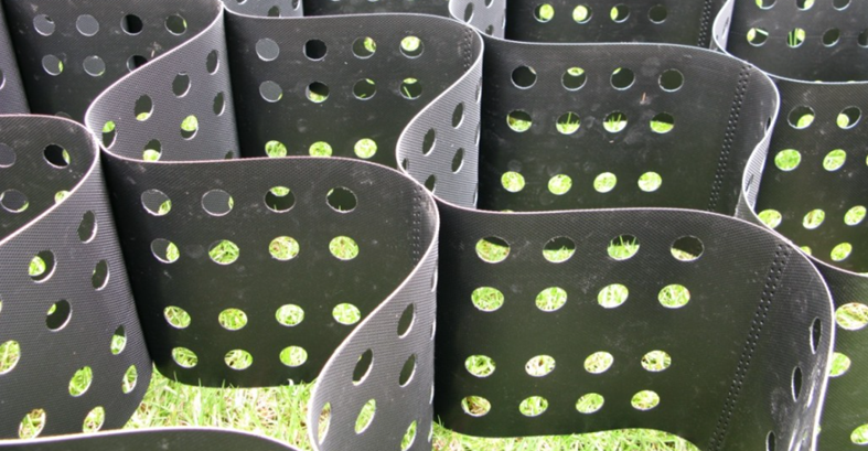 Geosynthetic geocells are three-dimensional lightweight and flexible material made of ultrasonically bonded polyethylene strips, to form a shape of honeycomb. This design enables the geocells to confine material and prevent its movement sideways. This function finds its way into slope and channels stabilization, retaining walls, landfills and reservoirs stabilization, load support for infrastructure etc. The geocells improve the load-bearing capacity of the soil by limiting its lateral motion under pressure of loads. They also limit the erosion processes by preventing materials from sliding down on slopes of various inclines.