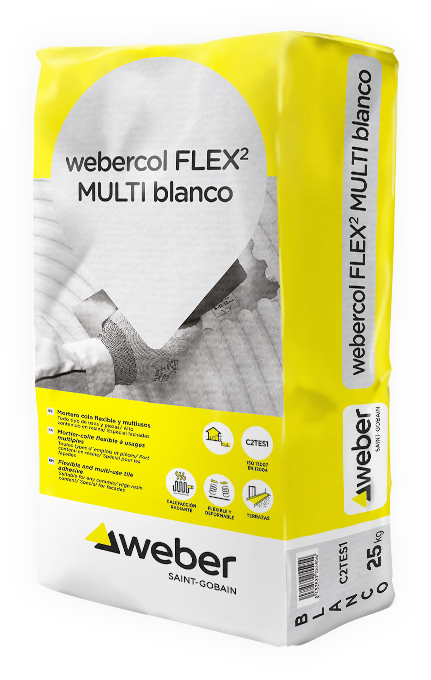 Webercol flex2 multi es un adhesivo flexible y deformable para la colocación de todo tipo de baldosas cerámicas, de formato pequeño y mediano, en la realización de revestimientos en muros y pavimentos tanto interiores como exteriores, y especialmente recomendado para zonas sujetas a deformaciones térmicas como fachadas expuestas y sistemas de calefacción radiante.