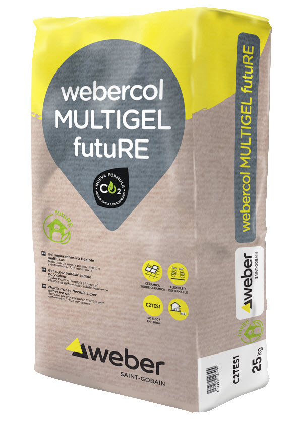 Webercol multigel futuRE es un Gel superadhesivo flexible ultrafino, cremoso, ligero y sin descuelgue para la colocación de todo tipo de baldosas cerámicas, de cualquier formato y absorción, en la realización de revestimientos en muros y pavimentos tanto interiores como exteriores, y especialmente recomendado para zonas sujetas a deformaciones térmicas como fachadas expuestas y sistemas de calefacción radiante.