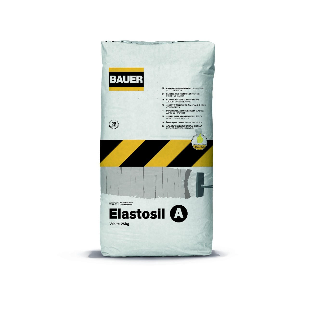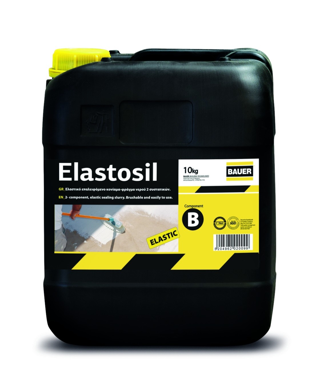 - Elastosil is a flexible 2-components brushable cement-based sealing slurry for waterproofing of concrete, bricks, plaster, wood, metal, cement mortars, cement blocks, stone and most construction materials. Elastosil has the ability to bridge wide cracks (even greater than 2mm) and is ideal for sealing surfaces which have or are expected to show hairline cracks due to thermal expansion and contraction or vibration. Suitable for surfaces likely to be covered with tiles on balconies, terraces, pools and bathrooms, inverted insulation roofs, underground tanks, surfaces with ponding water, walls and basements, tanks, tunnels, foundations, canals, etc. It offers great durability under sun exposure and extreme weather conditions as final coating. Elastosil guarantees complete waterproofing under positive or negative hydrostatic pressure and the surface stays vapor permeable. Suitable for contact with drinking water/portable water tanks. Elastosil is provided in ready to mix packs and the mixture can be applied by brush easily and economically.