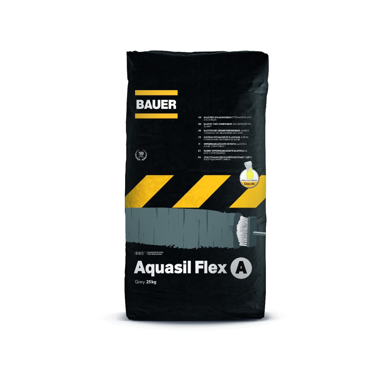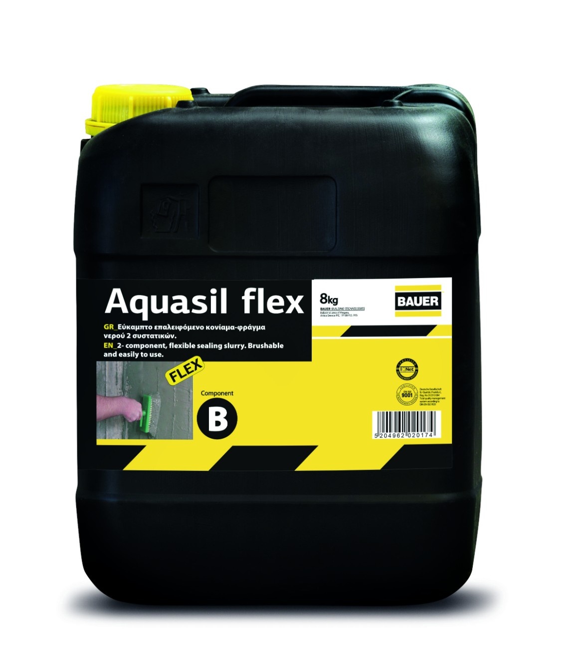 - Aquasil flex is a flexible, 2-components brushable sealing slurry for complete and permanent waterproofing of concrete, brickwork, plaster and generally mineral construction materials. Aquasil Flex has the ability to bridge surface cracks and is ideal for waterproofing substrates that show or are expected to show haircracks due to thermal contractions-expansions or vibrations, such as surfaces to be covered with tiles on balconies, terraces, pools and bathrooms, inverted insulation roofs, walls and floors of basements, tanks, tunnels, foundations, canals, etc. It guarantees complete waterproofing under positive or negative hydrostatic pressure and the surface stays vapor permeable, while it is suitable for contact with drinking water. Aquasil Flex consists of two components, provided in ready to mix packs. The mixture can be applied with brush easily and economically.