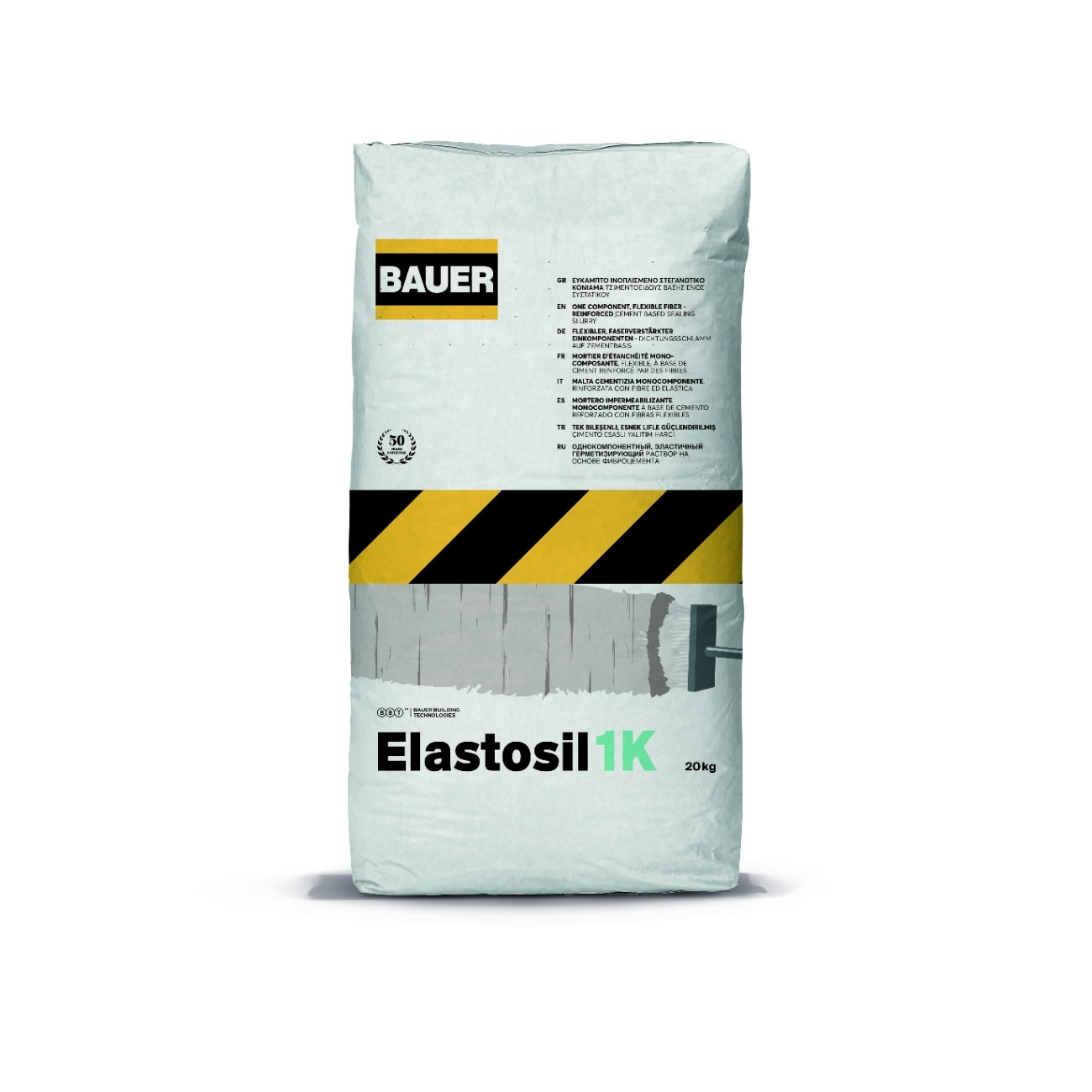 - Elastosil 1K is a high-tech flexible, fiber reinforced, one-component, cement-based, brushable, sealing product for waterproofing surfaces subjected to deformation such as concrete, plaster and generally mineral construction materials. It is ideal for substrates which have or are expected to show hairline cracks due to thermal expansion and contraction or vibration. Suitable for surfaces likely to be covered with tiles on balconies, terraces, pools and bathrooms, inverted insulation roofs, underground tanks, surfaces with ponding water, walls and basements etc. It guarantees complete waterproofing under positive and negative hydrostatic pressure and the surface remains vapour permeable.