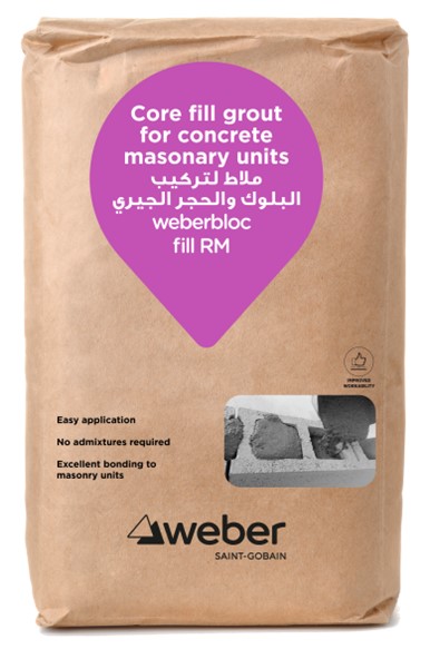 Weberbloc fill RM is a pre-blended mix containing cementitous materials, graded aggregates and additives for improved workability. It is particularly designed to fill masonry voids meeting the ASTM C 476 requirements for reinforced masonry construction. It is a fluid materials used to bond together adjacent masonry units and steel reinforcement in the cores of masonry units to the masonry assemblage.