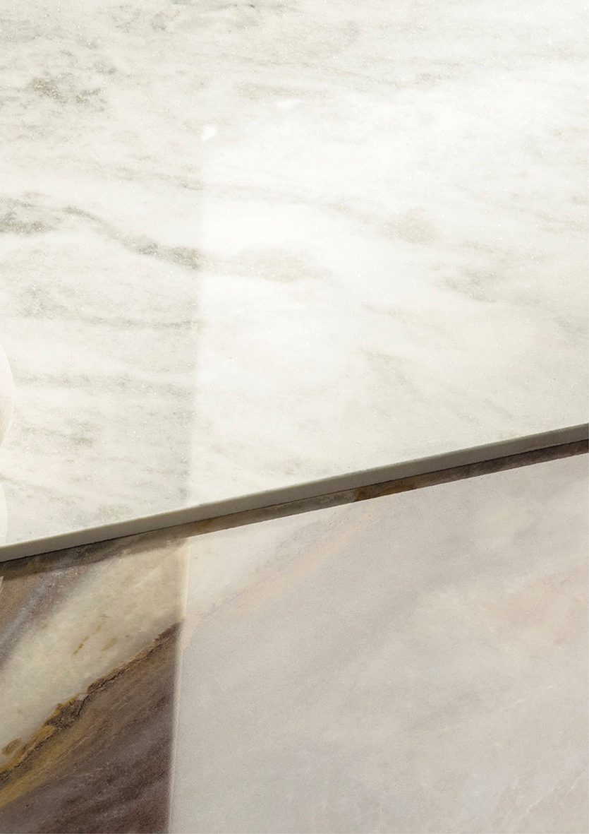 Large-size slabs combine maximum design freedom with great flexibility: while on the one hand the maxi-slab drastically reduces the amount of interruptions in the design unit, on the other hand the wide range of all submultiples guarantees great versatility for every need.