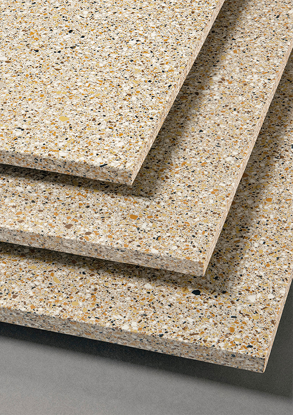 In particular, full-body porcelain stoneware surfaces combine technical characteristics with new qualities of extremely high performance: strength, lightness, flexibility, ductility.