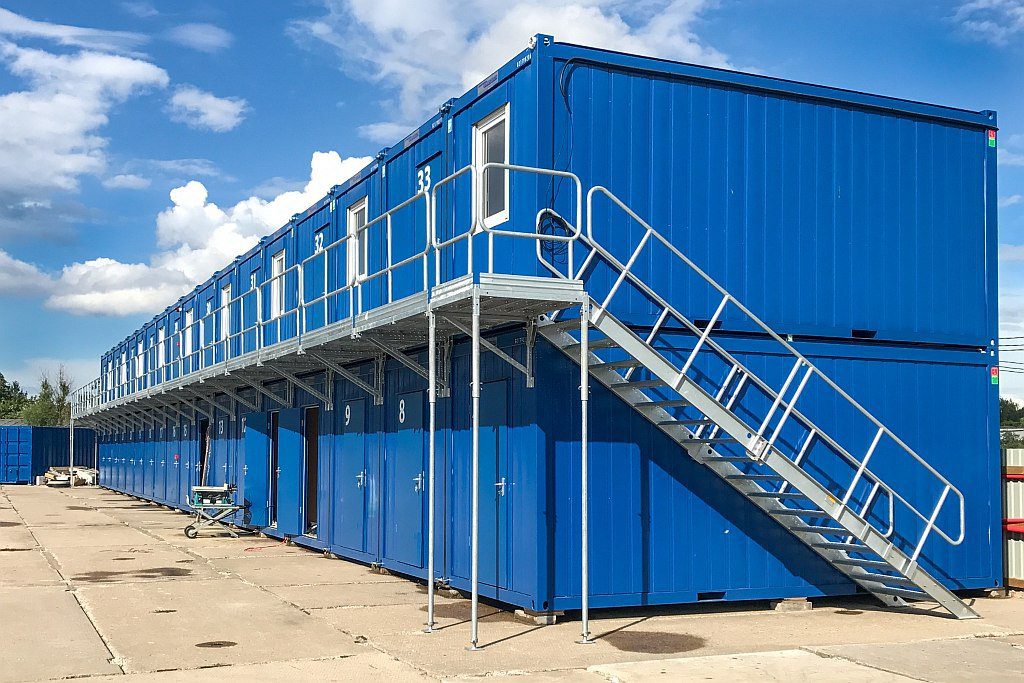 Container stairs (P-SK4, P-SK5, P-SK6, P-SK7, P-SK8, SK-KS) can be used for any type of construction container, whether being used for social areas, offices, warehouses, or shipping containers. Their universality allows you to fully configure the stairs, even when there are three levels of containers. Additional elements, like landings and uprights, let you assemble a complete communication system on each level of the container.