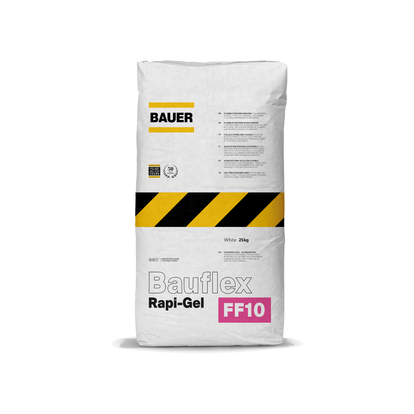 - Bauflex Rapi-gel is a polymer-enhanced adhesive offering exceptional adhesion and resistance to cracking from thermal changes, frost, and moisture. It is flexible and at the same time has extended open time for convenient and rapid installations and zero vertical slip for wall applications, facilitating efficient and precise tiling. This versatile adhesive accommodates all types, weights, and sizes of tiles, including natural stone and decorative bricks, on various substrates, especially those prone to expansion, contraction, or vibrations. Whether for indoor or outdoor use, in dry or wet environments, Bauflex Rapi-gel proves its reliability in a multitude of settings, including walls, floors, worktops, showers, swimming pools, and heated screeds. Compatible with a range of substrates such as brick, concrete, plaster, and even old layers of ceramic tiles or wooden floors.