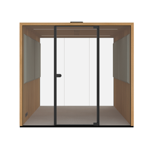 Lohko Box 7 is a nature-inspired soundproof workspace for up to 7 people. With ample room for atables and other accessories, it provides an optimal space for collaboration.
