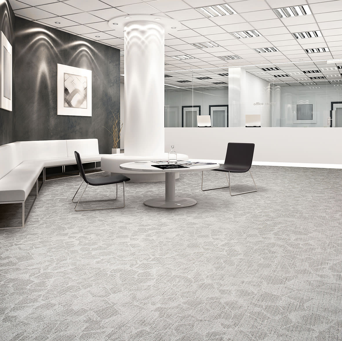 EF Contract's Nexus® Cushion Modular carpets work beautifully, whether specified alone or with one of our many broadloom options. Nexus Cushion Modular carpet tile styles are made with nylon, Nylon 6,6, or PET face fiber. This EPD includes results for Encore® SD Ultima® Nylon—25% post-industrial recycled nylon, Encore®100 Nylon—100% post-industrial recycled nylon, Nylon 6,6—0% post-industrial recycled nylon and TeraPlex® SD polyester fiber. Nexus® Cushion modular carpet tiles feature a high-performance polyurethane cushion. A representative product within the Nexus® Cushion family was chosen. The composition within the Nexus® Cushion family of products does not differ other than pigments and patterns used to give each style of carpet tile its own distinct appearance. The variation in terms of pigments used is less than 5% of the total product weight and is excluded from the study. This EPD covers all styles and colors under the Nexus® Cushion Modular product family utilizing the yarn systems covered.