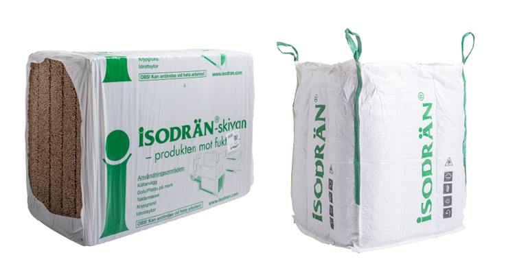 The product types within this EPD are the Isodrän Board and Isodrän Crushed Board, with solidity 60 kPa. The products are intended to be used as thermal insulation, moisture protection and drainage. The products are used within civil engineering applications, in underground structures of fundaments and buildings. Examples of common areas of use are basement walls, concrete slabs, roof gardens and fundaments.Isodrän Boards in kPa 60 are available in two dimensions: 1000 x 750 x 100 mm and 1200 x 800 x 65 mm. Isodrän Crushed Board is available in one size, a bag of 1,8 m3 material. The functional unit of 1 m3 used in the EPD can be extrapolated for any future sizes of these products. The boards are listed in the Nordic Ecolabelling “Ecolabel” and can thus be used in Nordic Ecolabelled buildings. The Isodrän board is presented in the database of Byggvarubedömningen.