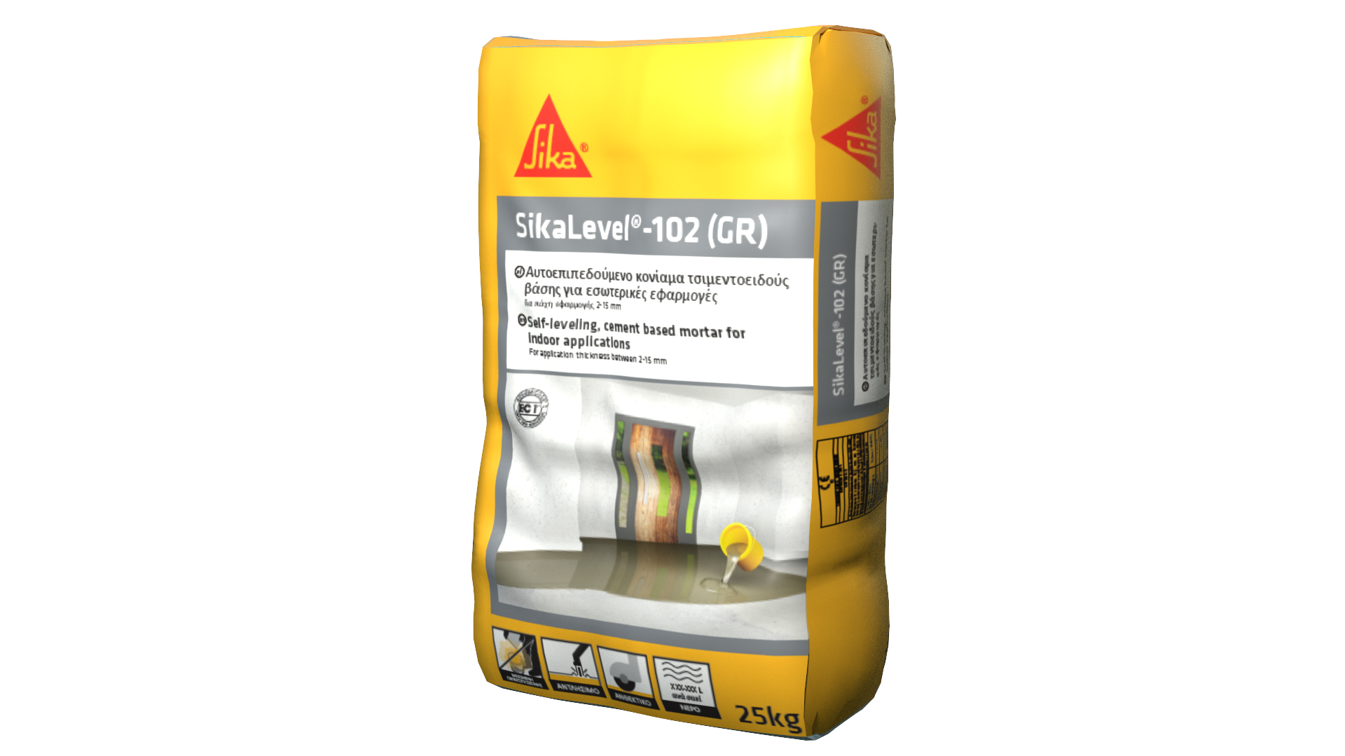 SikaLevel®-102 (GR) is a one part, polymer modified, pumpable self-leveling cementitious underlayment for the leveling and smoothing of interior floors.