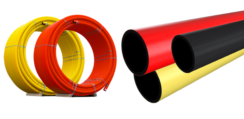 Cable protection (non-pressure) pipes are produced mainly from black REG HDPE granules, a secondary raw material regranulated from the primary raw material.
