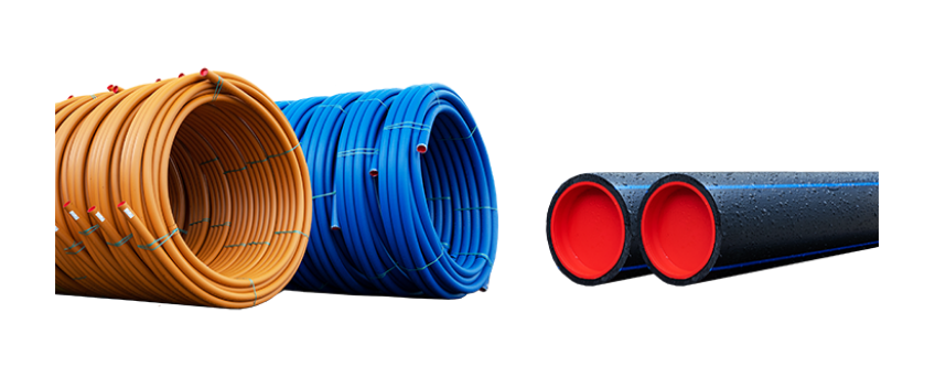 Pressure pipes are produced from black HDPE granules in smaller amounts of blue or brown HDPE granules.