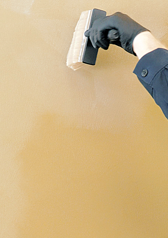 Patina Living is water-based resin covering with a delabré plaster texture and natural shaded finish. The surface of Patina is velvety to the touch and characterized by ripples and material vibrations resulting from the imperfections of hand-made processing.