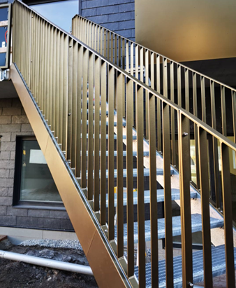 The product has a function of a light steel construction for stair, balcony, walkway and open facade railings in residential or industrial structures/developments. The steel structures are manufactured by performing cutting, drilling, cold forming and welding works at Cosmos Construction, UAB factory located in Vilnius, Lithuania.