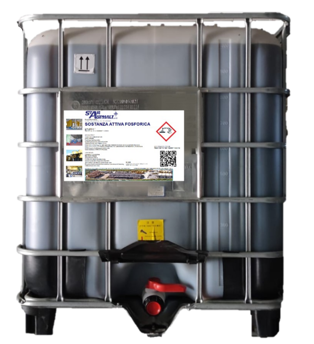 SOSTANZA ATTIVA FOSFORICA is a special multifunctional additive for refineries and conglomerate plants, entirely based on polyphosphoric acid ester produced by Star Asphalt S.p.A. (REACH registration number: 01-2119896587-13-0015), which enables improved conglomerate performance even at production and working temperatures lower than 50 °C and promotes adhesion between bitumen and aggregate. The use of SOSTANZA ATTIVA FOSFORICA educes carbon dioxide emissions and power consumption, both those due to the plant effort to mix the mix and those required to bring it to high temperatures.