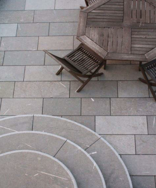 Flamed or planed limestone slab is used for outdoor ground applications. The typical thickness is 40 mm. The limestone slabs resist wear and tear well but have low resistance to salt used for deicing why it is typically used for low traffic and private areas which do not require deicing.