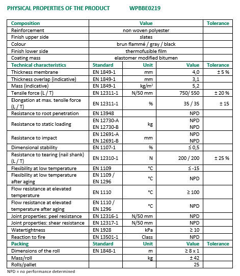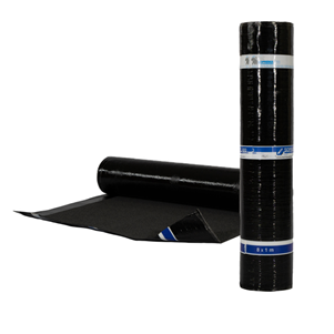 Membrane composed of elastomer modified bitumen and a non woven polyester reinforcement. Used as an upper layer within a single or multi layer waterproofing system. The upper surface is finished with slates and the overlap is protected by a thermofusible film. The lower surface is protected by a thermofusible film.